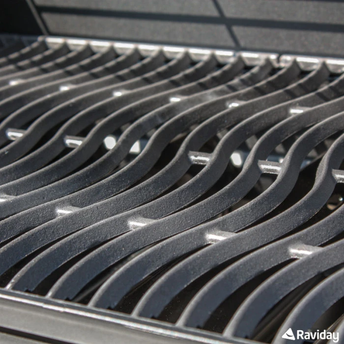 Un jet de flamme est propulsé pour allumer les 4 brûleurs puis la chaleur se répartit de manière homogène sur les vagues de la grille en fonte émaillée Wave.