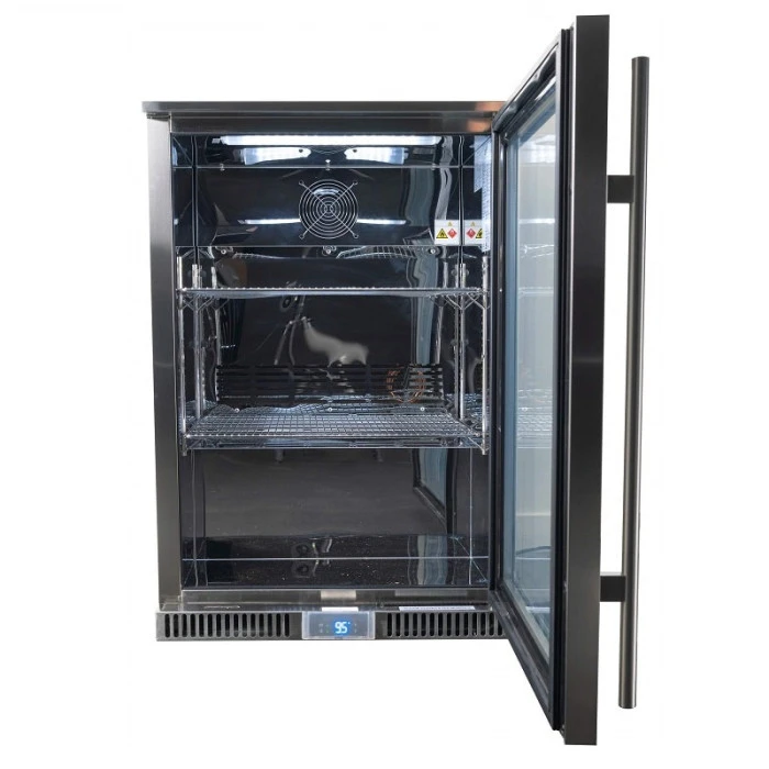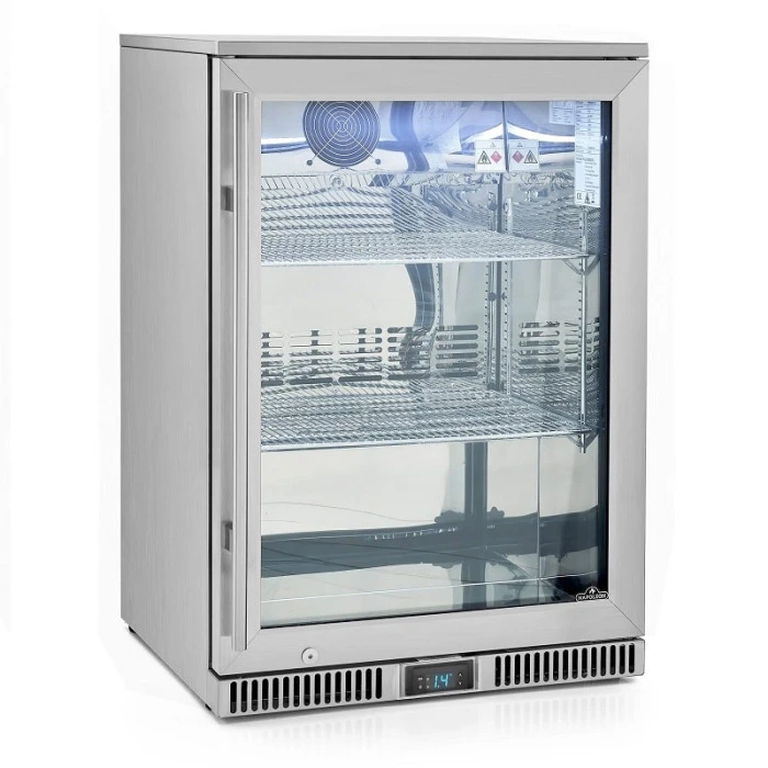 Avec sa porte en verre trempé très résistante, les aliments et boissons restent bien à l’abris de l’air extérieur. Sur cette version, l’ouverture de la porte est située sur le côté droit. Raviday vous propose également un modèle avec ouverture à gauche. 2 étagères à l’intérieur permettent d’entreposer tous les aliments que vous voulez avec un volume maximum de 135 litres.